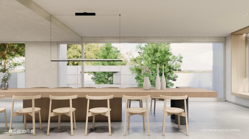 公設規劃包括接待大廳、交誼廳、健身房、廚藝教室等,呼應日系空間強調「回歸生活的本質」設計哲學,透過大面窗與戶外連結,引入自然採光,呈現純樸溫潤、清新自然的通透感。