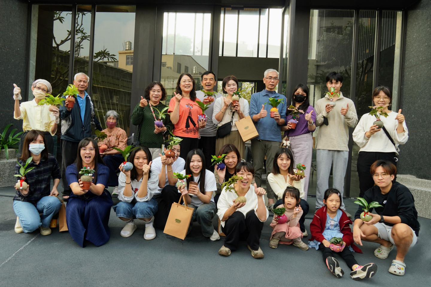 由屏東在地手作品牌「植醉」帶領,住戶們一起體驗植物球的手作過程,從纏繞、定型到完成。
