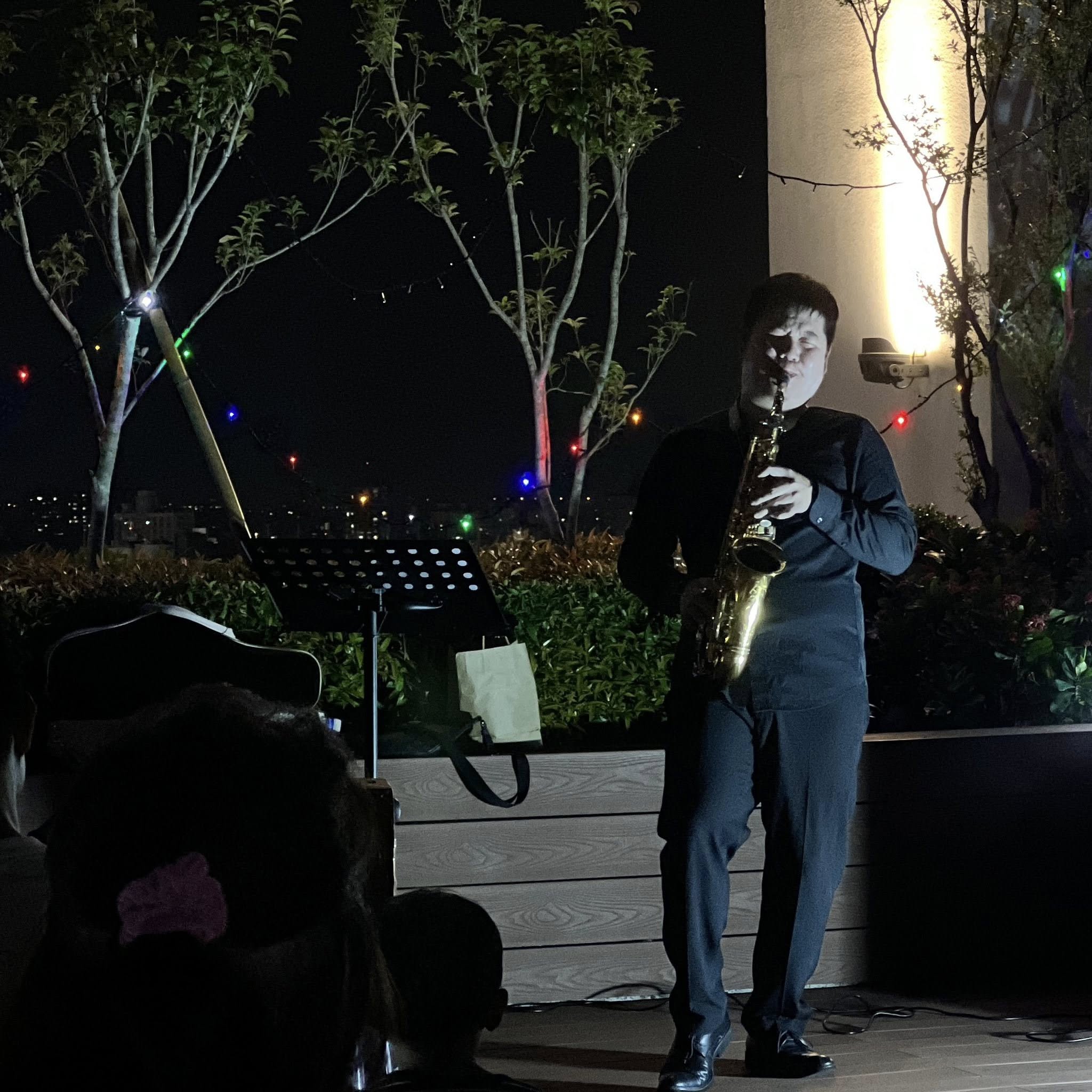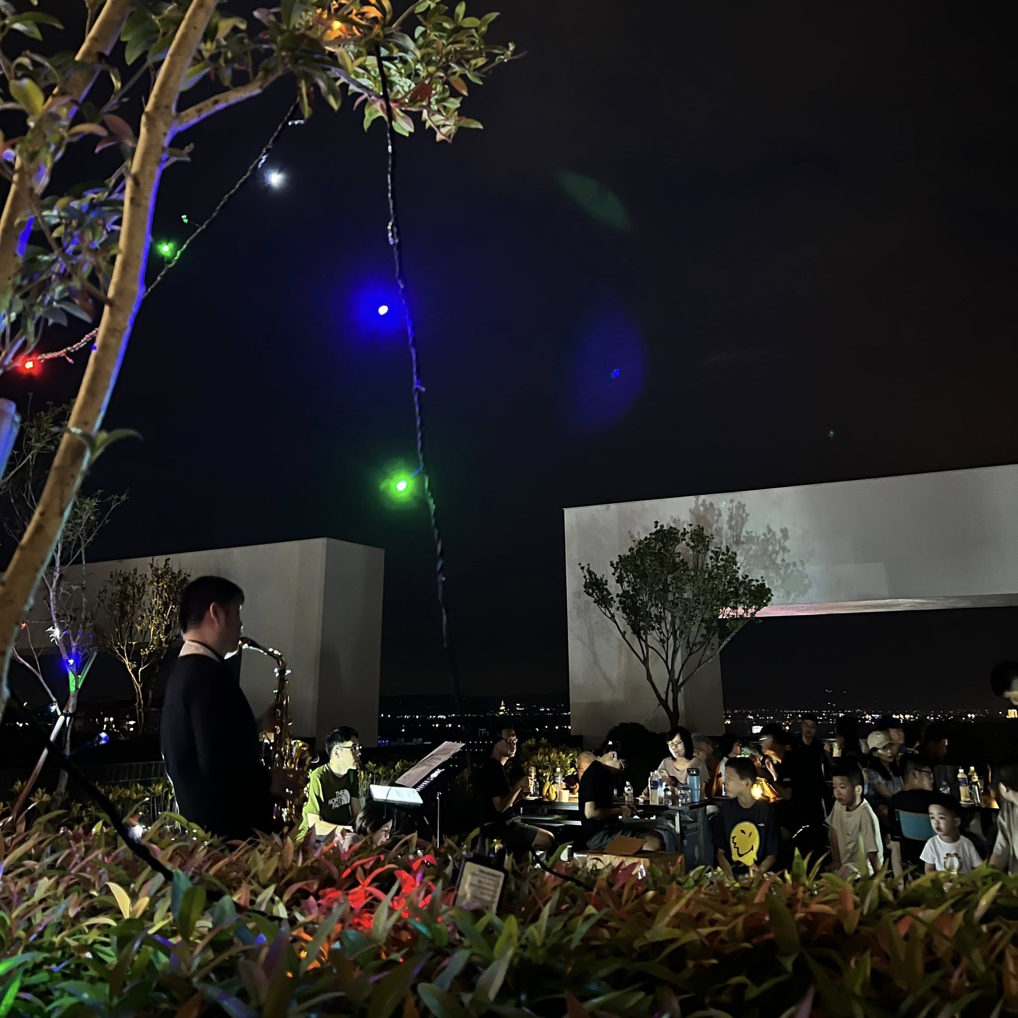 🌕🎶【閲山社區首場中秋音樂會】屋頂的樂章緩緩響起,住戶的招呼聲、美味的地中海料理,伴隨著薩克斯風悠揚的旋律。